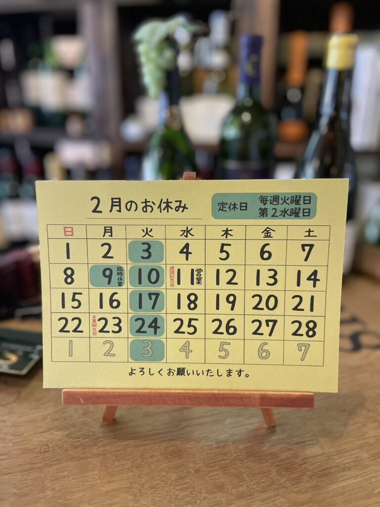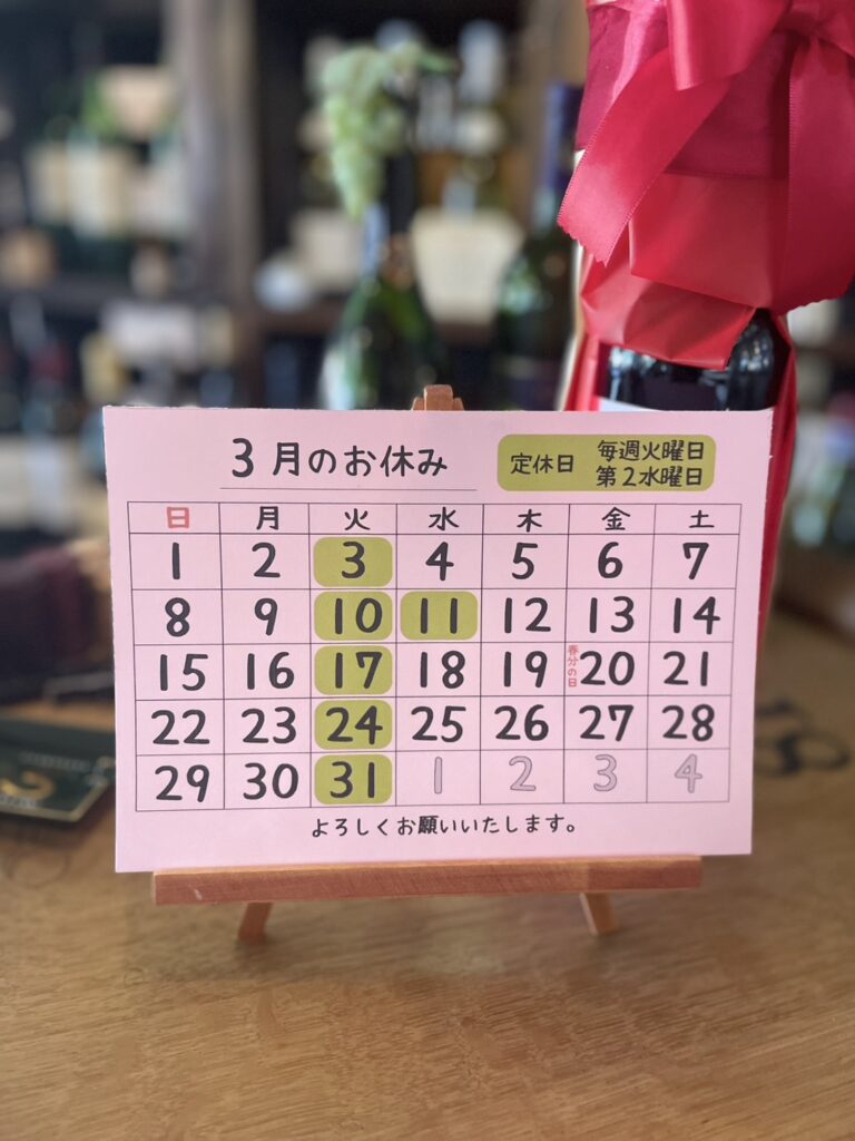 【定休日のお知らせ】2026年2月と3月